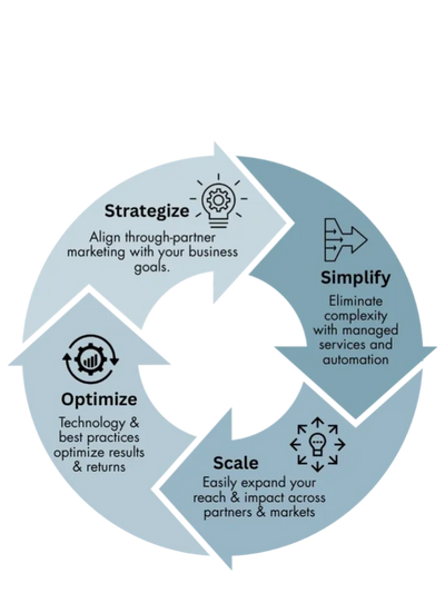 We make through-partner marketing simple, scalable, and measurable. Our proven management framework ensures you are set up for success, and deliver impactful results for you and your partners.